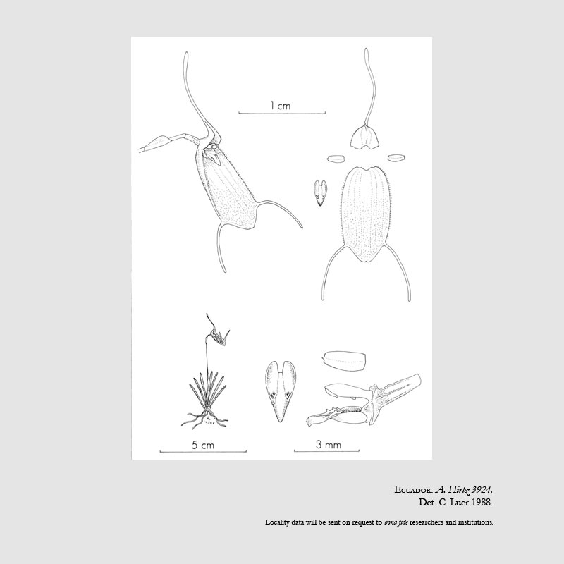 References W3 Tropicos, Kew Monocot list , IPNI ; *Icones Pleurothallidinarum Vol VI Systematics of Pleurothallis subgen Ancipita, Scopula and Trisetella Luer 1989 drawing fide; ; Ecuadorian Native Orchids Vol 5 Dodson 2004 photo fide; Orchids Masdevallia with its segregates including Dracula Zelenko 2014 photo fide;