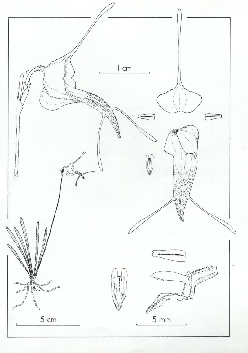 References W3 Tropicos, Kew Monocot list , IPNI ; *Icones Pleurothallidinarum Vol VI Systematics of Pleurothallis subgen Ancipita, Scopula and Trisetella Luer 1989 drawing fide; Native Ecuadorian Orchids Vol 5 Dodson 2004 photo fide; Orchids Masdevallia with its segregates including Dracula Zelenko 2014 photo fide;
