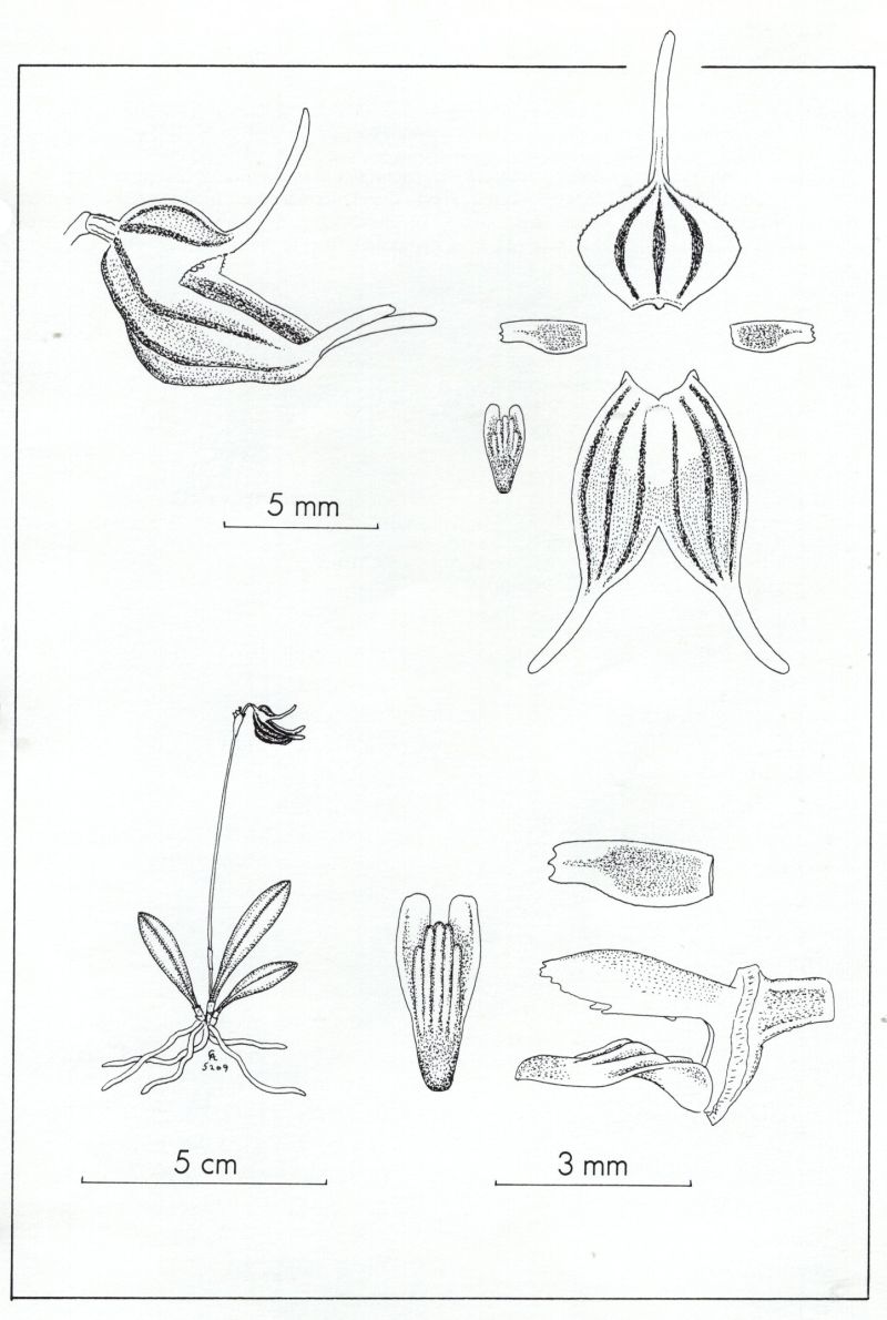References W3 Tropicos, Kew Monocot list , IPNI ; Icones Pleurothallidinarum Vol VI Systematics of Pleurothallis subgen Ancipita, Scopula and Trisetella Luer 1989 drawing fide; Orchids Masdevallia with its segregates including Dracula Zelenko 2014 photo fide;