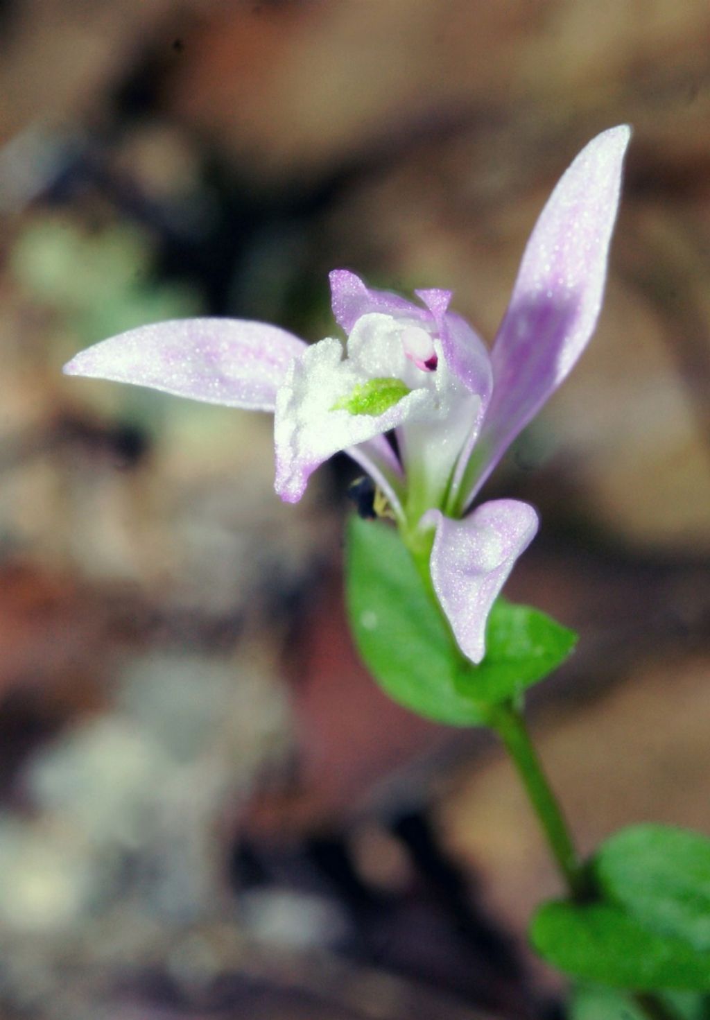 Found in southeastern Canada & eastern United states to Mexico, Guatemala, El Salvador and Panama at elevations up to 1600 meters as a miniature to small sized, cold to cool growing terrestrial orchid with an erect stem carrying 2 to 8, broadly ovate to cordate, dark green with a purple cast or as in the forma rossii the stems and leaves are white, pink and yellow and blooms in the mid summer through late fall on an erect, axillary, 1 to 25 nodding flowered inflorescence