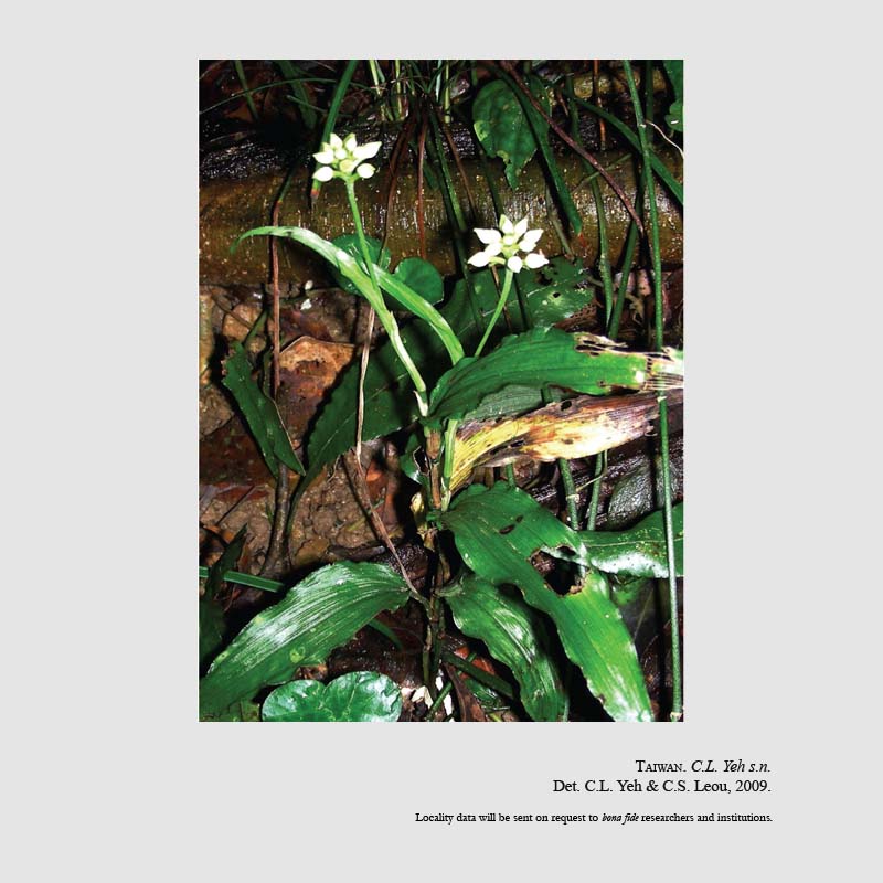 References W3 Tropicos, Kew Monocot list , IPNI ; *Taiwania 54(2): 140. Yeh & Leou 2009 drawing/photo fide