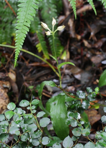 Found in Japan, The Ryukyus and Taiwan in forests at low to medium elevations as a medium sized, warm to cool growing terrestrial with an erect, slender, often branched stem with the proximal nodes enveloped by sheaths and carrying 1 to 2, alternate, elliptic to ovate-lanceolate, papery, acute apically leaves that blooms in the summer on a terminal, subglobose, sparsely pubescent, to 2.4" [6 cm] long, 5 to 10 flowered inflorescence with lanceolate floral bracts and carrying non-resupinate flowers