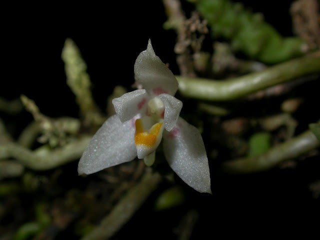 Found in Thailand, penninsular Malaysia, Borneo, Java, Sumatra, Ambon Island and the Philippines in low stature hill and lower montane forests at elevations of 760 to 1500 meters as a miniature sized, warm to cool growing epiphyte with stems that become pendant with age carrying 3 to 6, lanceolate to narrowly lanceolate, apically unequally bilobed, each lobe acute leaves that blooms in the late winter and early spring on an axillary, gradually extending to 3/4" to 1.6" long, many successively flowered inflorescence with triangular, acute floral bracts that carry close set, short-lived, fragrant flowers.