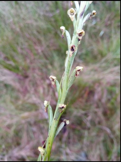 Found in central Madagascar in marshes and cypress plantations at elevations of 1500 to 2000 meters as a medium sized, cool growing terrestrial with fasciculate, narrowly turnip-shaped tubers giving rise to stem basally sheathed by several narrowly adpressed sheaths and carrying medially, 1 to 2, narrowly linear, leaves grading to bracts above that blooms in the late spring and summer on an erect, 5.2" [to 13cm] long, densely many flowered inflorescence with lanceolate-acuminate, slightly longer than the flower floral bracts