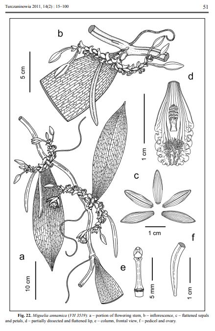 References W3 Tropicos, Kew Monocot list , IPNI ; Lankesteriana 9(3): 355-398 Soto Arenas & Cribb 2010; Identification of the Orchids [Orchidaceae Juss.] Vietnam Averyanov 1994 drawing fide; Turczaninowia 2011, 14(2) : 15–100 Averyanov 2011 as Miguelia annamica drawing fide