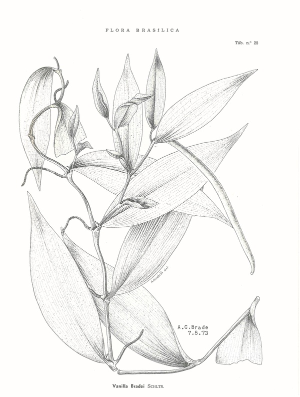 Vanilla bradei Schltr. ex Mansf. 1928 SUBGENUS Vanilla Drawing by © Hoehne and The Swiss Orchid Foundation at the Jany Renz Herbaria Website