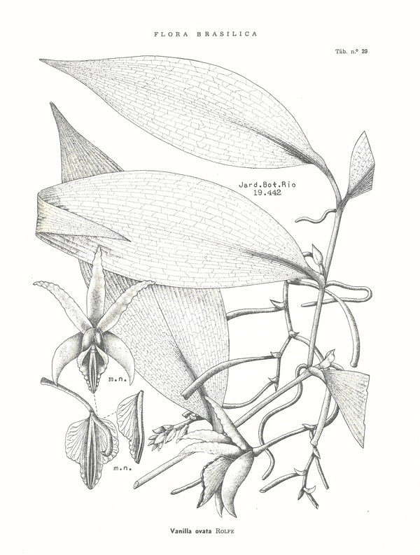 Vanilla ovata Rolfe 1896 SUBGENUS Vanilla Drawing by © Hoehne and The Swiss Orchid Foundation at the Jany Renz Herbaria Website