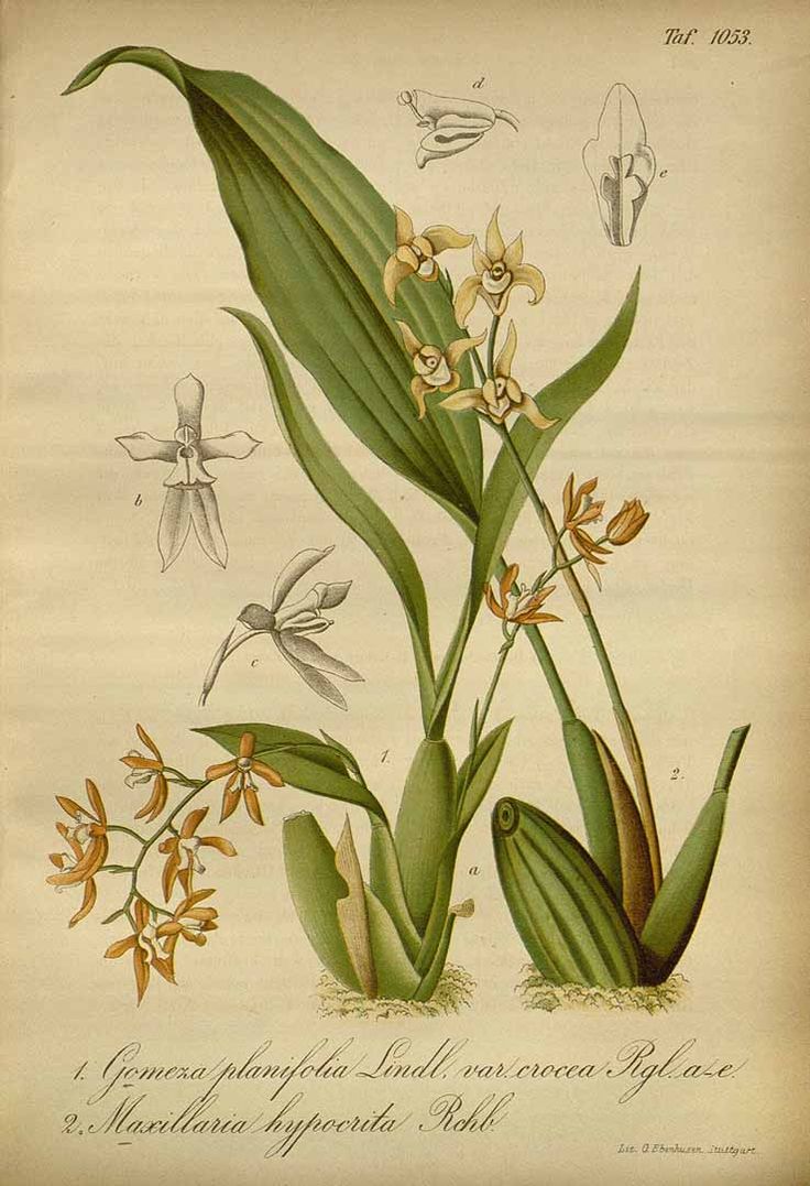 Xylobium hypocritum (Rchb.f.) Rolfe 1912 Drawing by © Rchb.f. as Maxillaria hypocrita #2 d-e in the darwing above