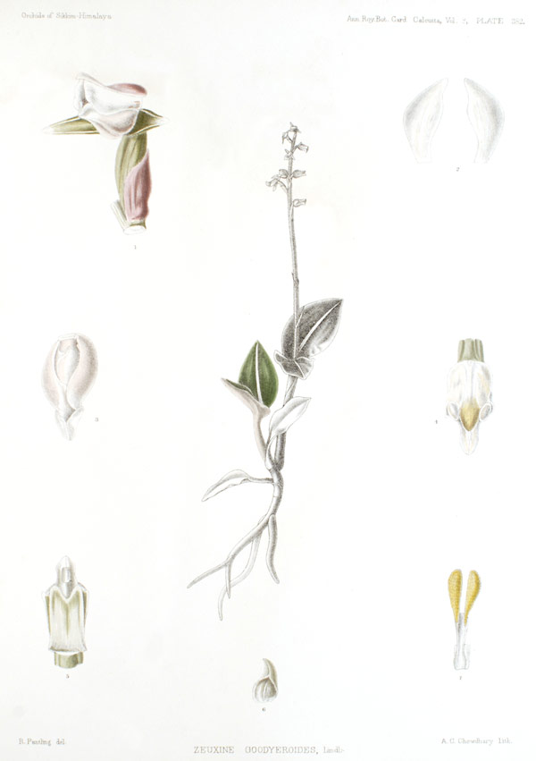 References W3 Tropicos, Kew Monocot list , IPNI ; Icones Vol 22 Hooker 1893 drawing fide; A Century of Indian Orchids Vol 5 Hooker 1895 drawing fide; The Orchids of Sikkim-Himalaya Part 1 King & Pantling 1898 drawing fide; Die Orchideen Schlechter 1915; Encyclopedia of Cultivated Orchids Hawkes 1965; Die Orchideen 3 Auflage Bd 1 Sonderabdruck aus Schlechter Lieferung 5 257- 320 Brieger, Maatsch and Senghas 1974 drawing fide; Indian Orchids, Guide to Identification and Culture Pradhan 1976 drawing fide; Orchids of Bhutan Pearce & Cribb 2002; Flora of China Vol 25 Zhengyi, Raven & Deyuan 2009; Flora of China Illustrations Vol 25 Zhengyi, Raven & Deyuan 2010 drawing fide; A review on Spiranthoideae genera in Arunachal Pradesh Bulletin of Arunachal Forest Research 27 (1&2) : 1-33, Rao 2011; Atlas of Native Orchids of China Vol 1 Jin Xiaohua, Li Jianwu and Ye Deping 2019 photo fide