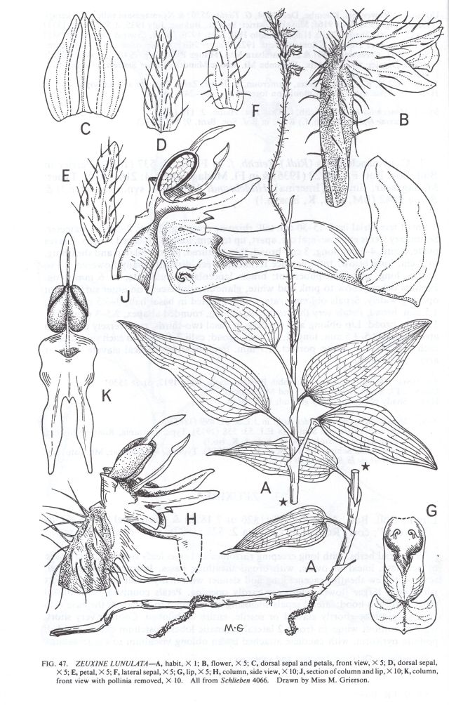 Zeuxine lunulata P.J.Cribb & J.Bowden 1979 Drawing by © Mary Grierson/Cribb