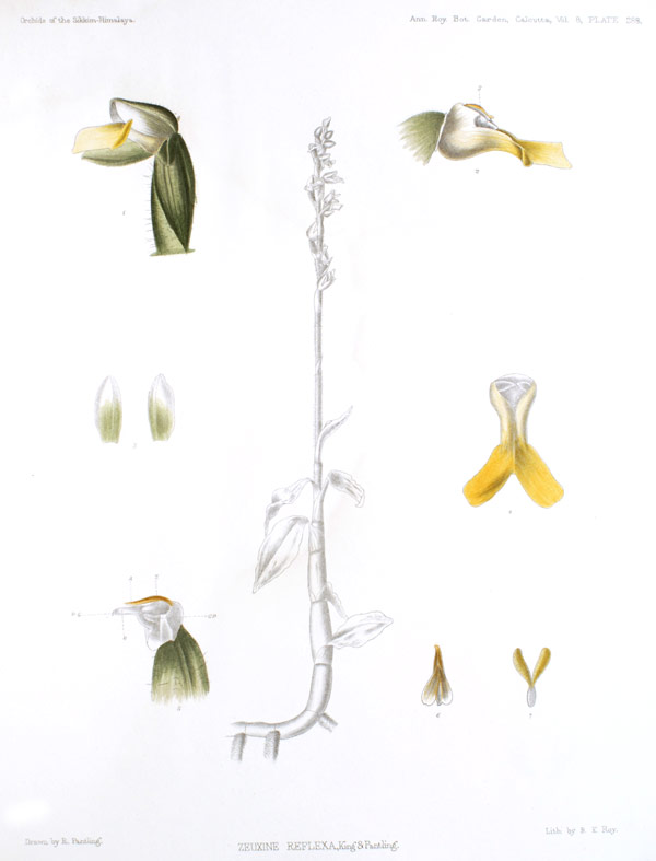 References W3 Tropicos, Kew Monocot list , IPNI ; *The Orchids of Sikkim-Himalaya Part 1 King & Pantling 1898 drawing fide; Indian Orchids, Guide to Identification and Culture Pradhan 1976 drawing fide; Orchids of Bhutan Pearce & Cribb 2002; Flora of China Vol 25 Zhengyi, Raven and Deyuan 2009 not = Z gracilis; Flora of China Vol 25 Zhengyi, Raven and Deyuan 2010 not = Z gracilisdrawing fide; The Wild Orchids of Hong Kong Barretto, Cribb and Gale 2011 under Z gracilis; Zeuxine reflexa (Orchidaceae) - a report on its occurrence and conservation status in India Kumar, Bhattacharjee, Venu and Rao 2013 photo/drawing fide;