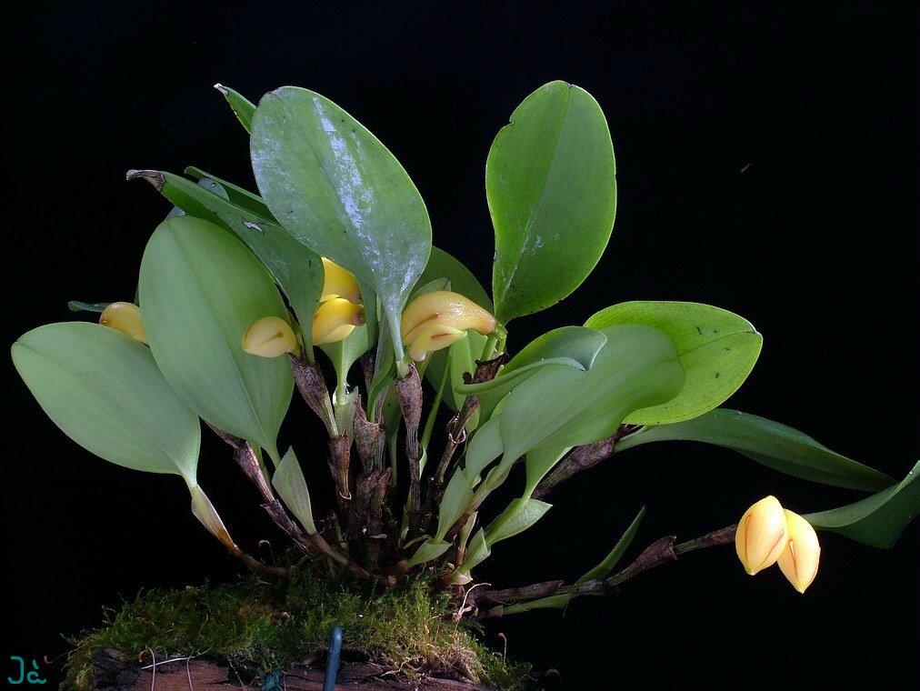 Found in Colombia and Ecuador at elevations of 400 to 600 meters as a miniature sized, hot to warm growing epiphyte with an erect ramicaul enveloped completely by 3 to 4, tubular, inflated, acuminate, spotted sheaths and carrying a single, apical, erect, coriaceous, elliptical, obtuse, gradually narrowing below into the elongate, petiolate base leaf that blooms in the summer on a short, single flowered inflorescence.