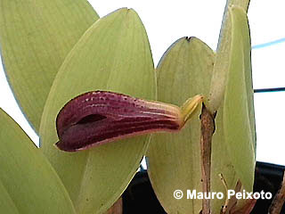 Found in Brazil in the southeast Atlantic forest at elevations of 700 to 1000 meters in shady and humid locations as a small sized, warm to cool growing epiphyte or terrestrial with erect, sheathed ramicauls carrying a single, apical, erect, coriaceous, dark green, ovate, acute leaf that blooms in the summer on 2 to 3 flowered inflorescence arising below the leaf..